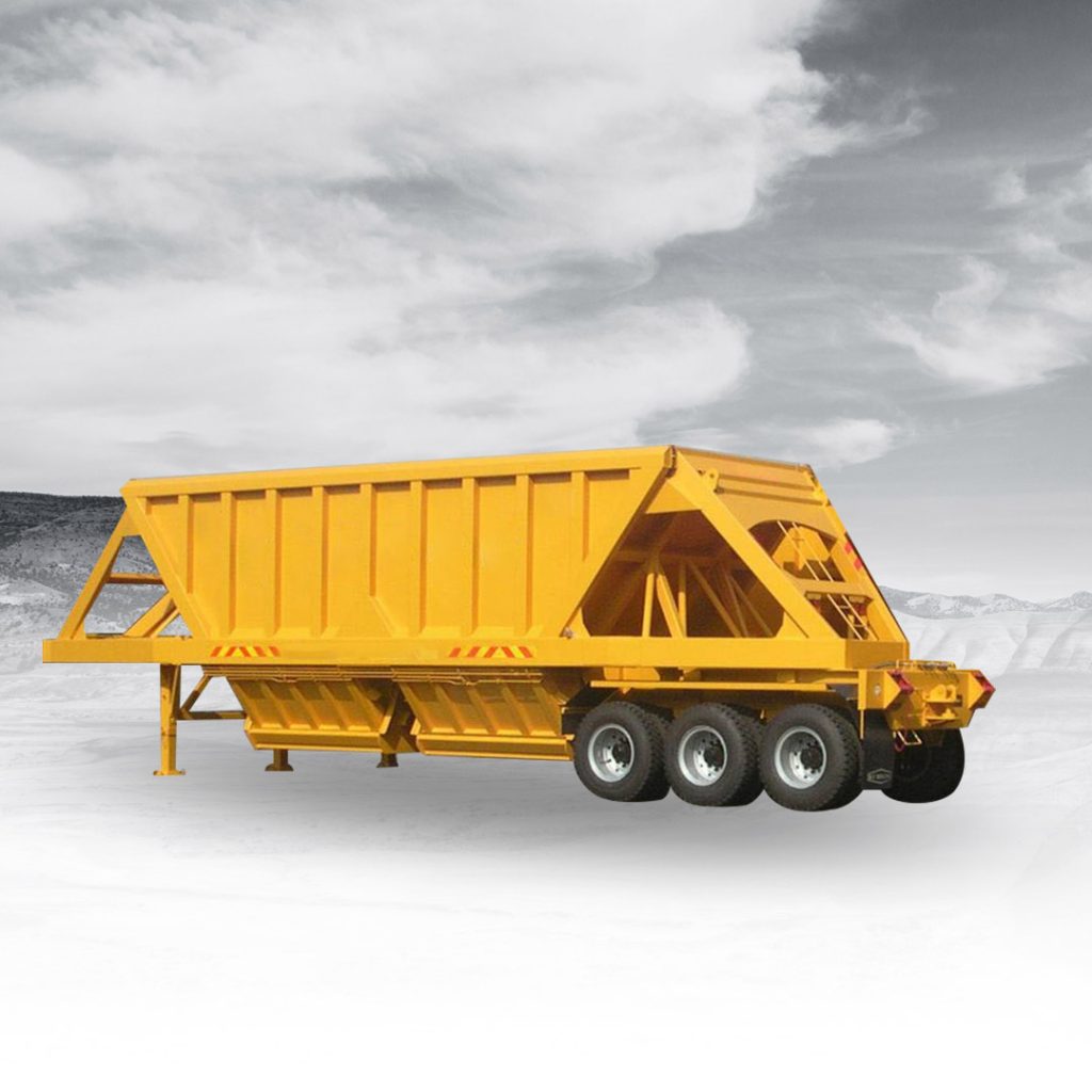 Hopper: The bottom of the trailer where materials are stored. Designed to funnel materials towards the gates for unloading.